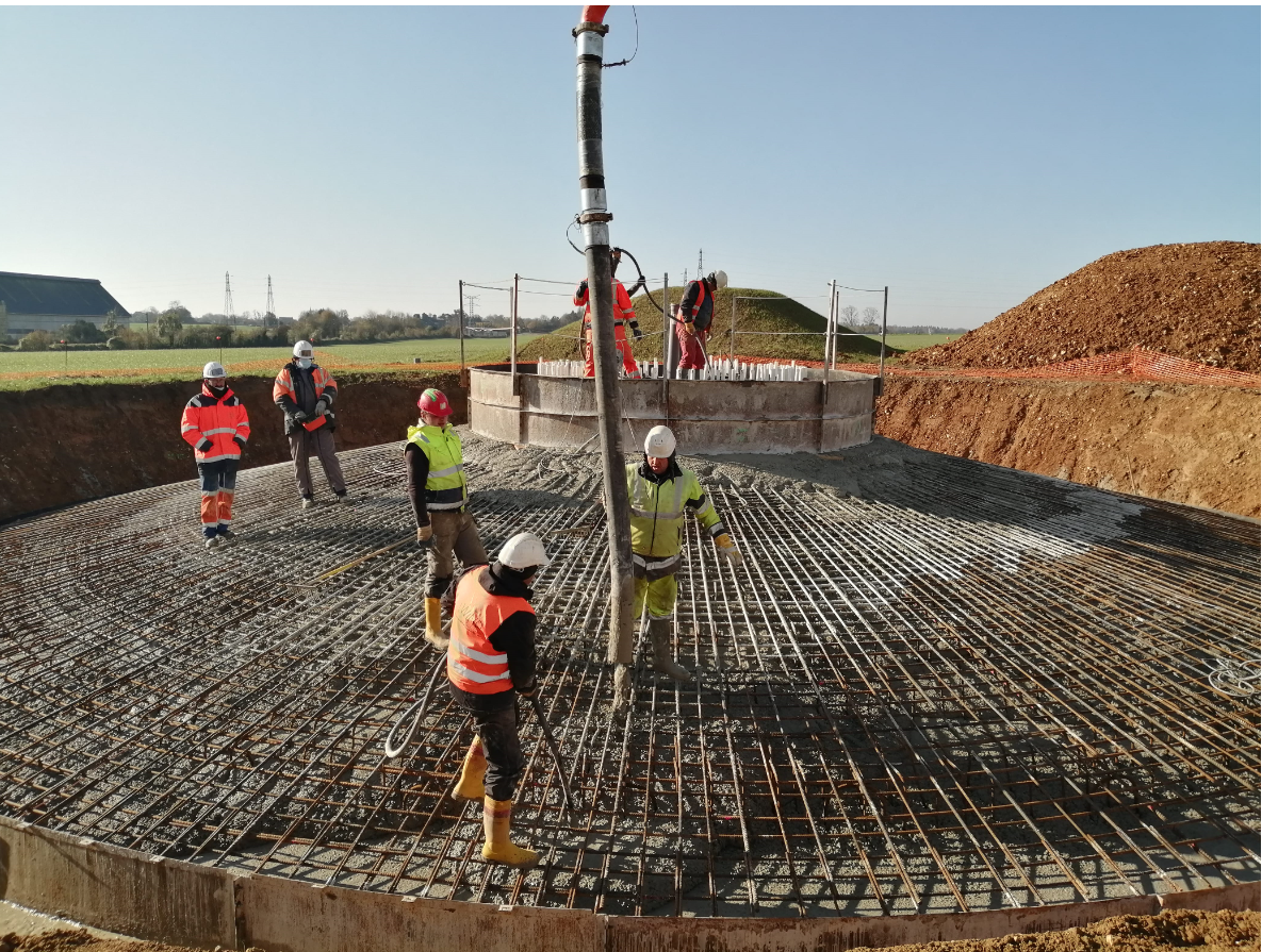 La construction du parc éolien des Oeillets a débuté en septembre 2020, à Fourcigny (Somme). Le chantier avance avec le coulage des fondations.