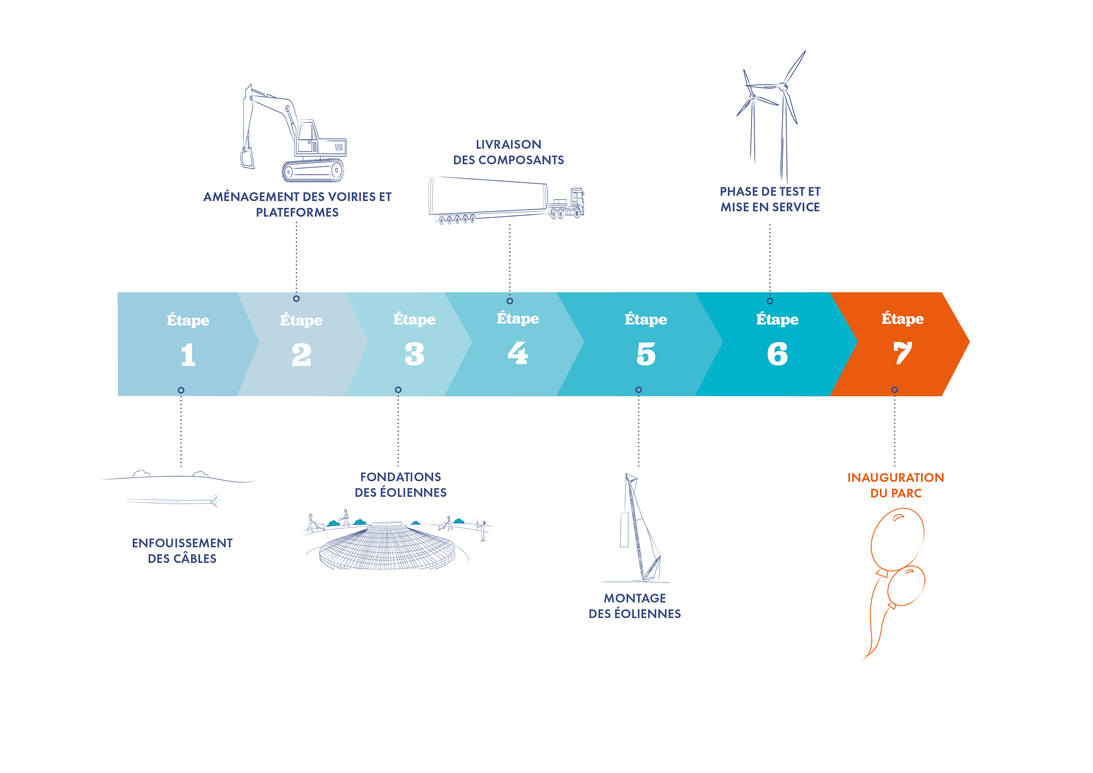 Autorisé en 2017, le parc se compose de 4 éoliennes V100 d’une puissance de 2,2 Mégawatts, pouvant approvisionner 10 000 foyers (hors chauffage) en électricité renouvelable.