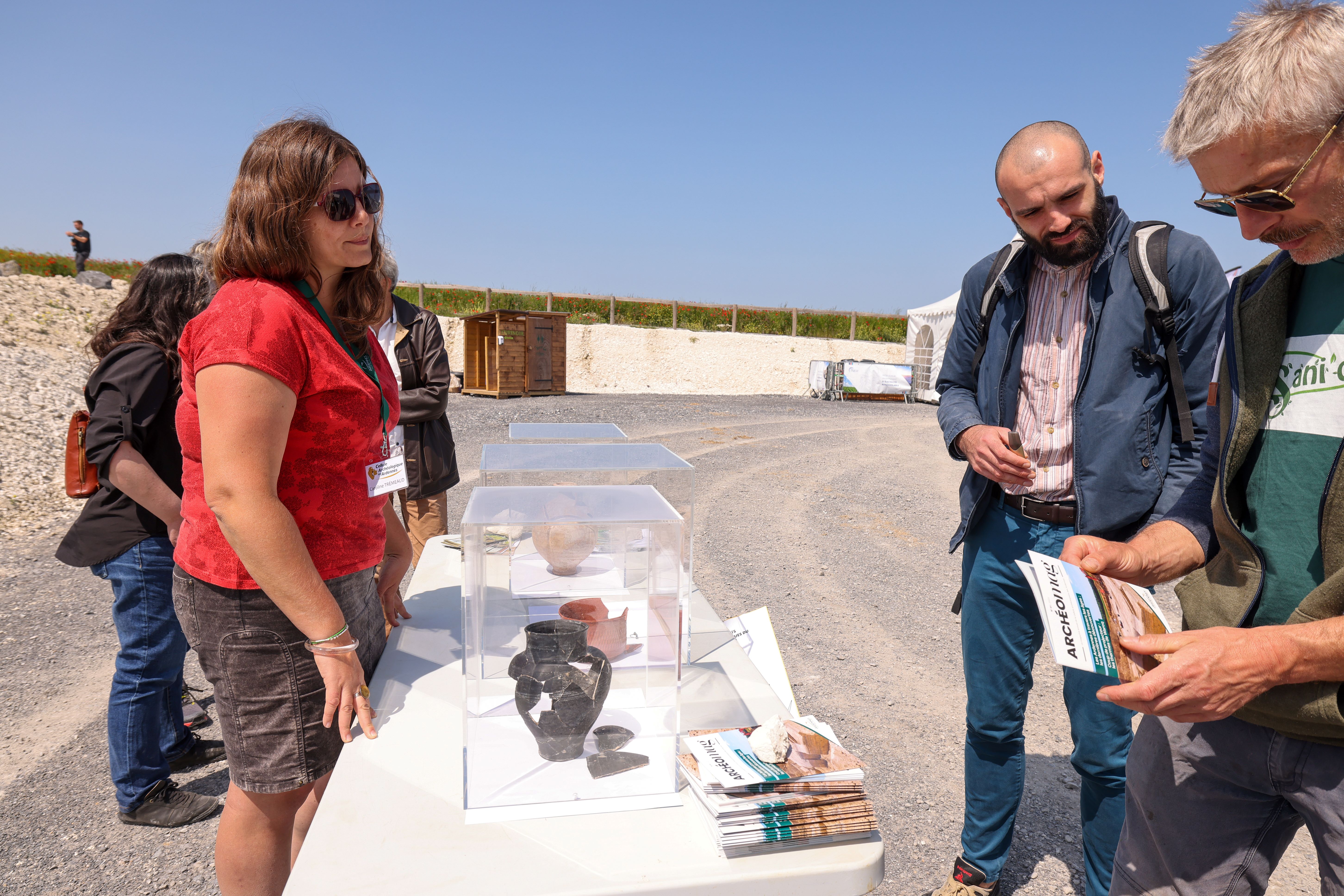 Deux archéologues, membres de la Cellule archéologique des Ardennes, ont présenté les résultats des fouilles effectuées avant le chantier : vases, amphores, objets en terre cuite...