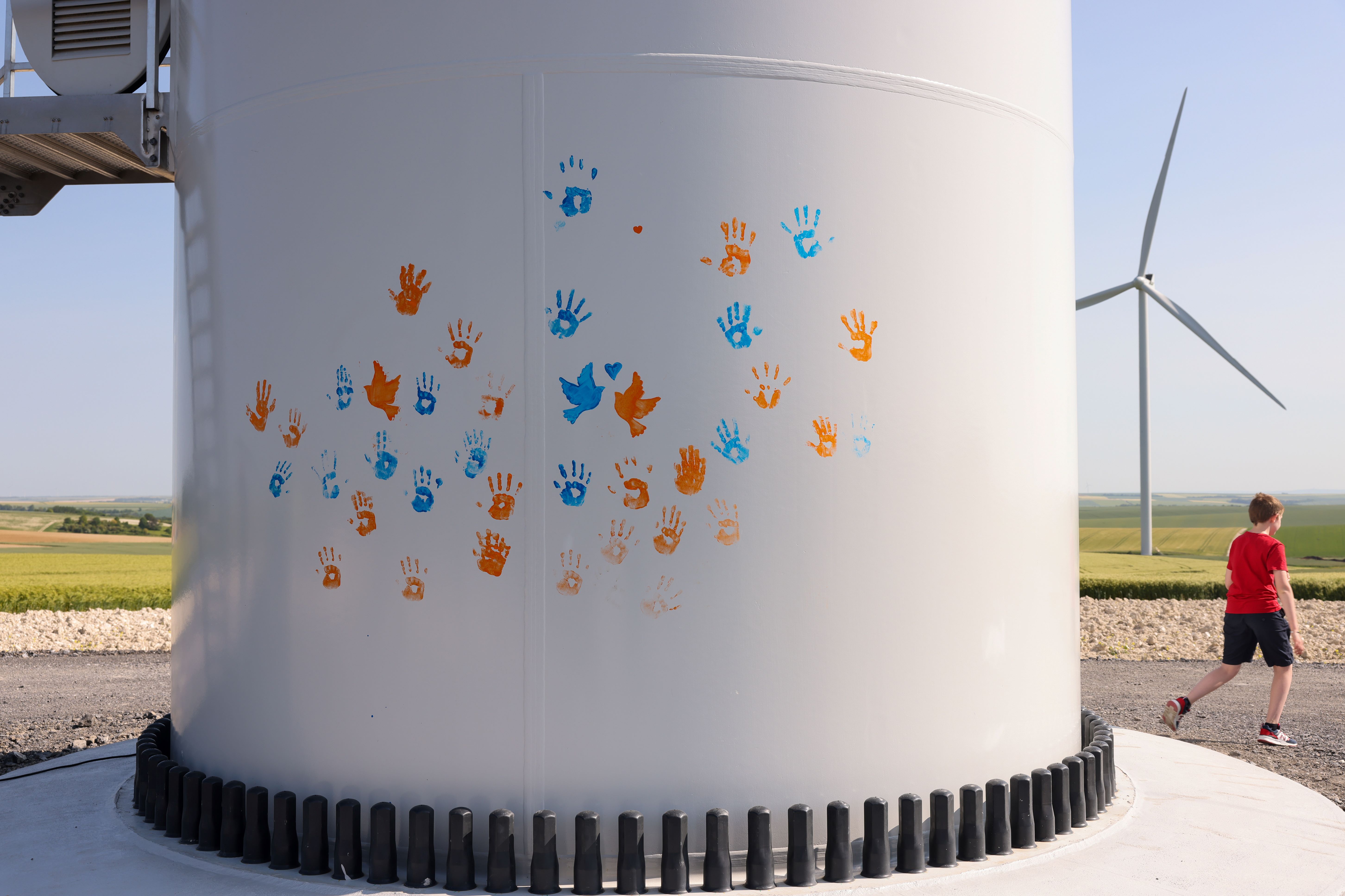 Les enfants ont pu effectuer des visites pédagogiques d’une éolienne, qu’ils ont baptisée de leurs mains.