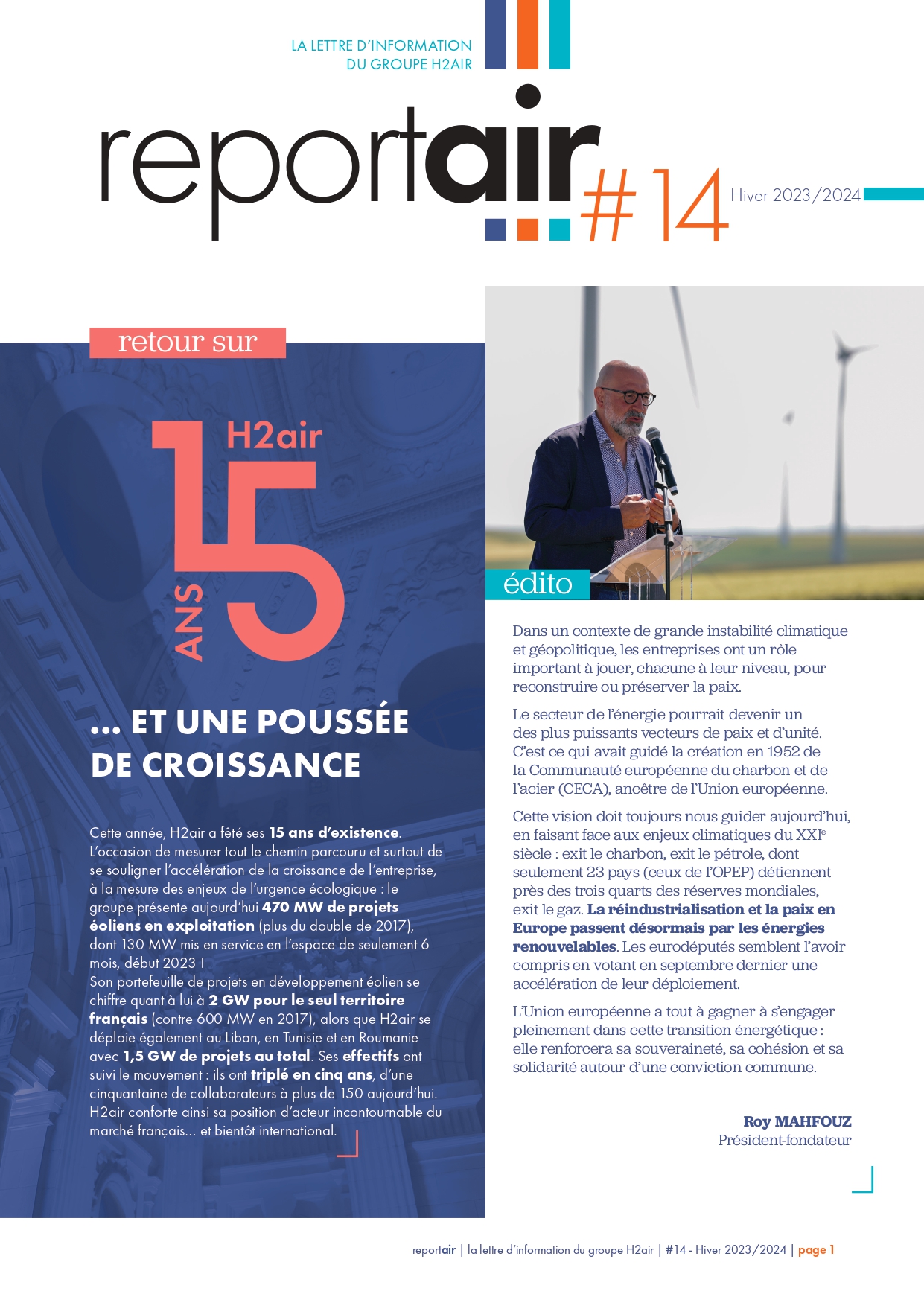 La société H2air installe et exploite des parcs éoliens dans tout le Grand Est