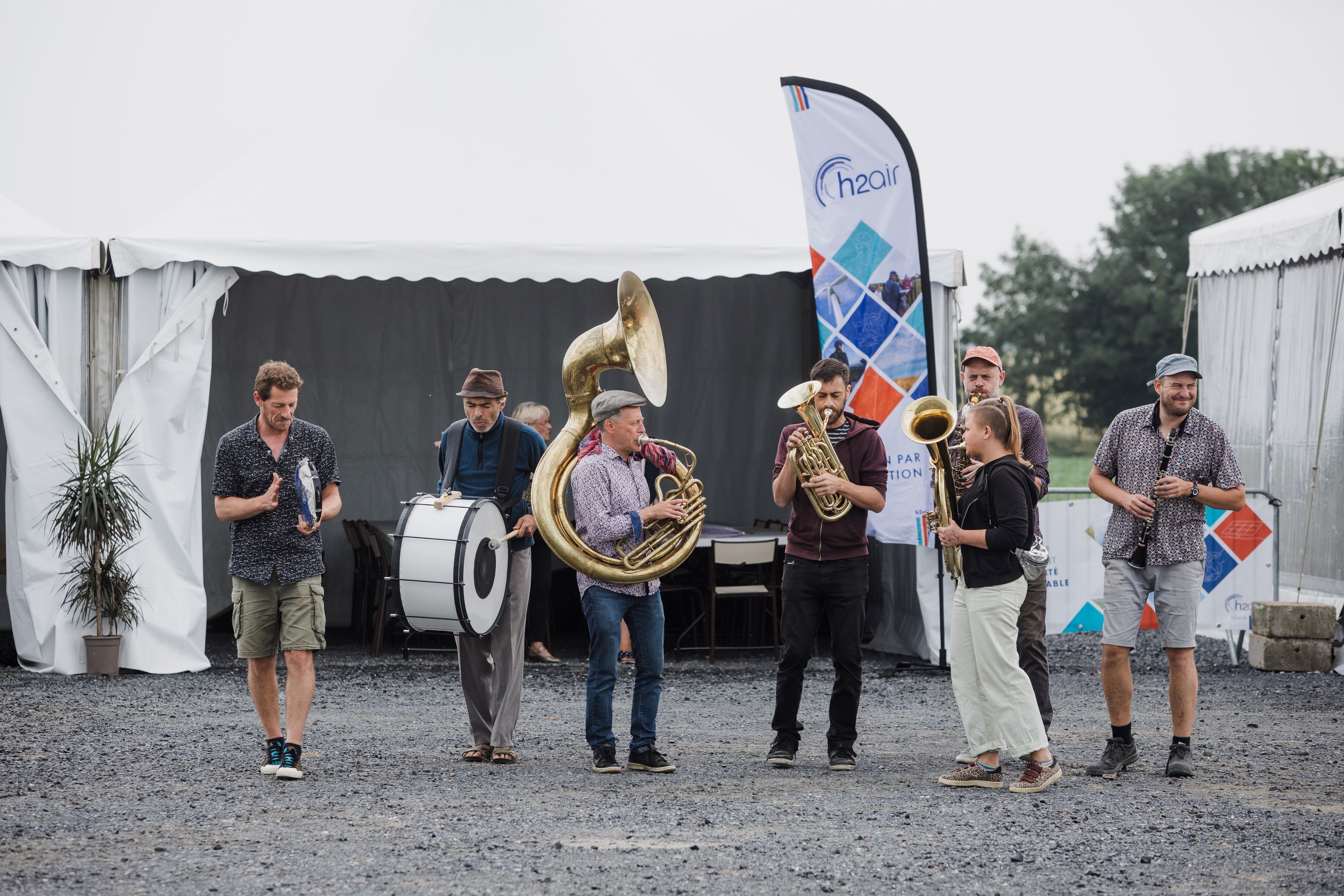L’ambiance était assurée par la fanfare du collectif La Miette, que ce soit à l’extérieur ou sous le grand barnum, où les invités sont allés s’abriter après les discours.
